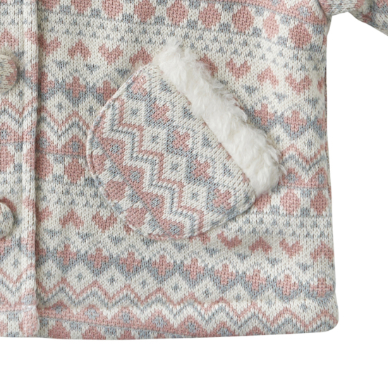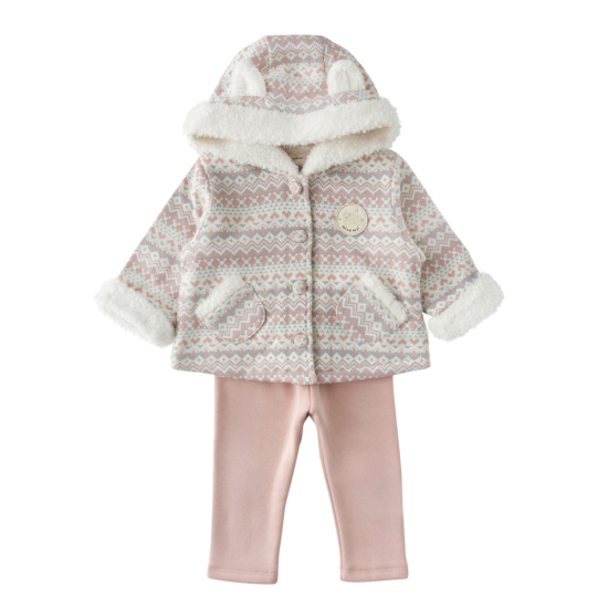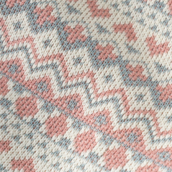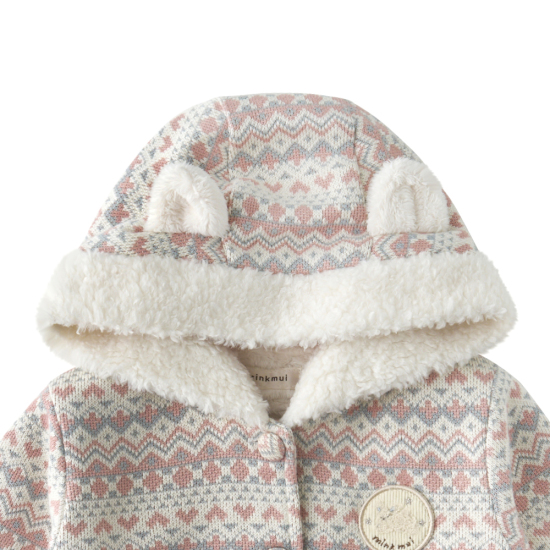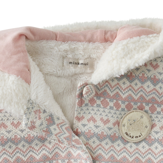 소프트한 핑크 컬러의 노르딕 상하복입니다. 윈터시즌에 어울리는 노르딕자가드패턴소제에 부드러운 덤블 소재를 더한 상의와 부드러운 퍼소재의 하의를 세트로 구성한 아이템입니다. 노르딕 문양이 포인트인 사랑스러운 아이템으로 제안합니다.