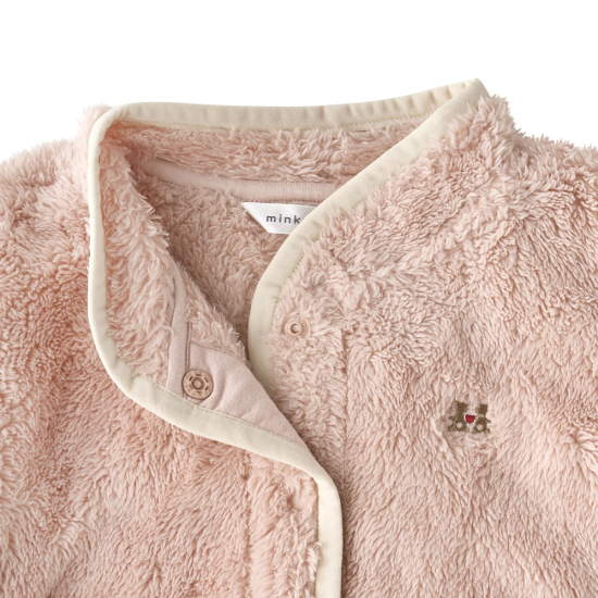 부드러운 퍼 소재를 활용한 상하복 SET 아이템입니다. 핑크 컬러 퍼 가디건과 하의를 매치했고 아미띠에 뮤 자수로 포인트를 주었습니다. 두께감이 있어 체온조절에 탁월한 아이템이며 캐주얼하게 입힐 수 있어 아기들에게 선물용으로 좋은 아이템입니다.