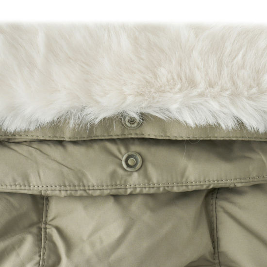 소프트한 카키 컬러의 롱 덕다운 점퍼입니다. 안쪽에 허리 조절이 가능한 스트링이 있어 핏을 다양하게 변화 할 수 있으며 롱한 기장으로 보온성까지 돋보이는 아이템입니다. 퍼 트리밍은 탈부착이 가능하여 두 가지 느낌으로 연출 가능합니다.