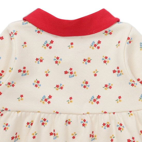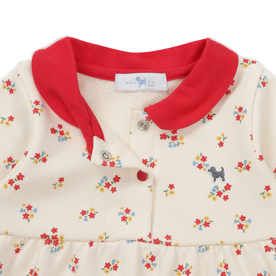 둥근카라, 배색 레깅스로 아이템력을 높였습니다. 잔잔한 플라워 패턴과 레드컬러가 포인트이며
