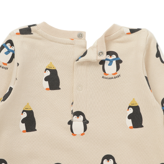 편안한 면소재의 우주복으로 펭귄 전판과 캥거루 포켓이 더해진 우주복과 비니로 구성된 세트형 아이템 입니다.