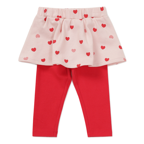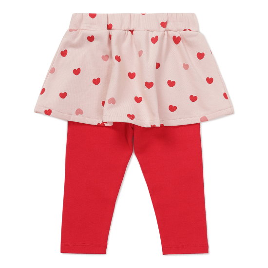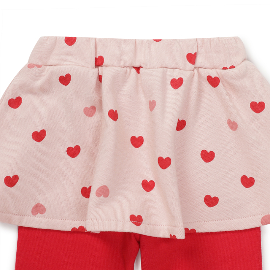 하트패턴 치마 레깅스로 사랑스러움을 더했으며, 겨울 시즌에 등원록으로 활용하기 좋습니다.