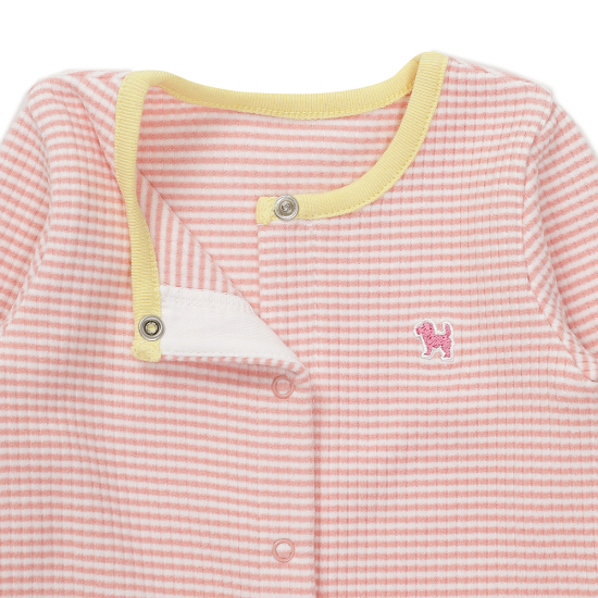 COZY COTTON 라인의 우주복 입니다. 모달 소재를 사용하여 흡습성과 촉감이 우수하고 신축성이 좋은 아이템입니다.