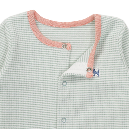 COZY COTTON 라인의 우주복 입니다. 모달 소재를 사용하여 흡습성과 촉감이 우수하고 신축성이 좋은 아이템입니다.