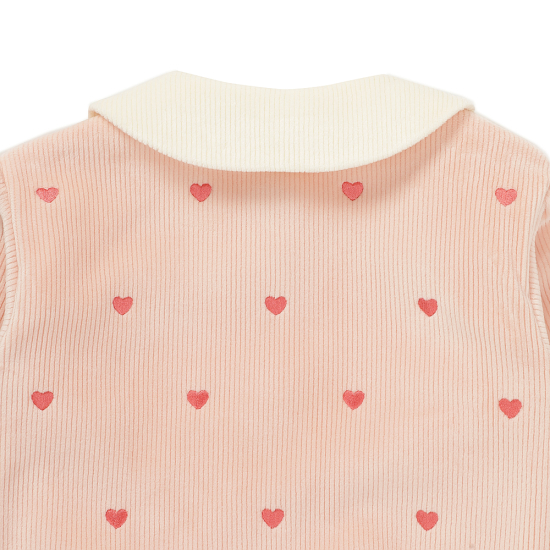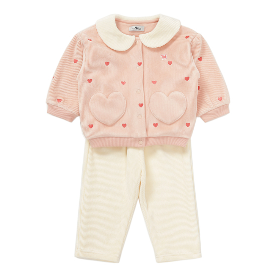 부드럽고 도톰한 소재의 귀여운 미니하트 자수 패턴 디테일이 돋보이는 상하세트 입니다.