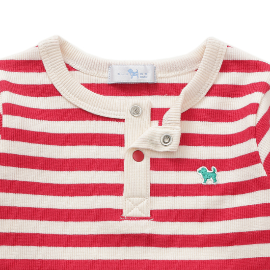 베이직한 레드 스트라이프 패턴으로 겨울 시즌 등원룩, 크리스마스 이벤트 아이템으로 활용하기 좋습니다.