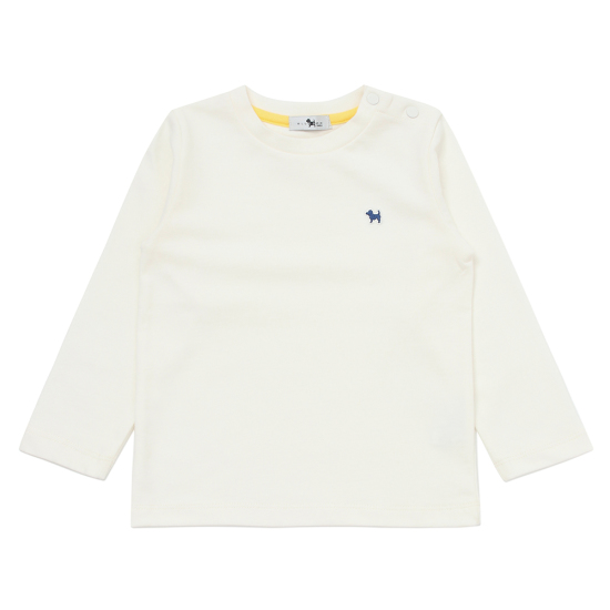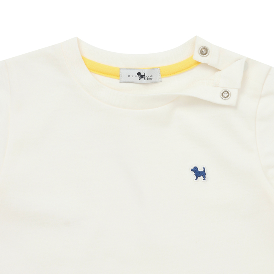 강아지 자수 포인트로 라벨이 들어간 베이직 싱글 피치 티셔츠 입니다.