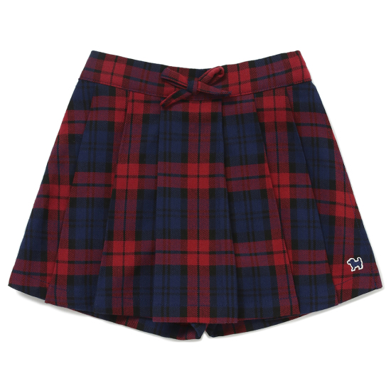 고급스러운 레드, 네이비, 아이보리가 픽스된 체크패턴의 우븐 원단을 사용한 스커트팬츠 입니다.