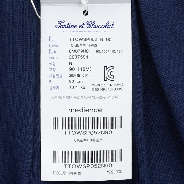 재질 : 겉감 면 92% 폴리에스터 7% 폴리우레탄 1% 배색 면 100%