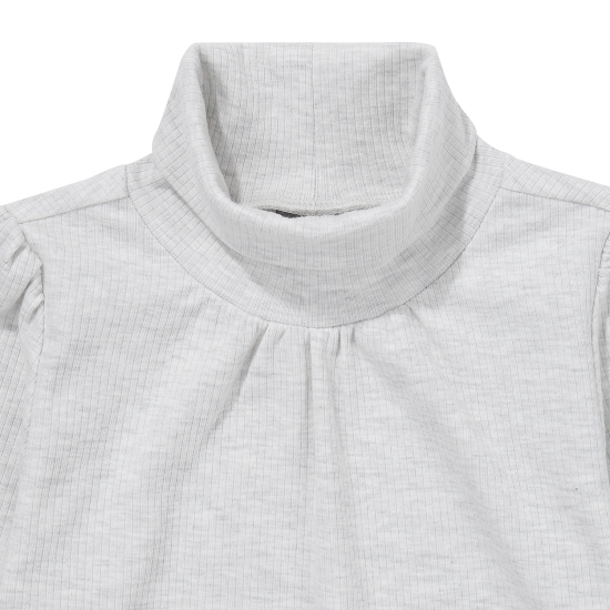 도시적이고 세련된 이미지를 보여주는 라이트 그레이 풀오버 티셔츠입니다. 네크라인 부분에 살짝 잡힌 셔링 디테일이 포인트로 사랑스러운 분위기와 세련된 분위기를 더해줍니다. 풀오버 디자인으로 네크라인을 접어 반넥으로 또는 펼쳐서 하이넥 스타일로 두가지 스타일로 연출할 수 있습니다. 다양한 아우터의 이너로 활용도 높은 아이템입니다.