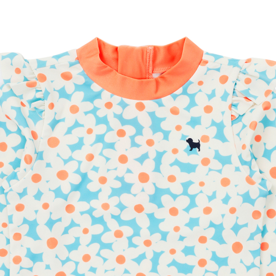 플라워 패턴의 래쉬가드 세트입니다. 뒷지퍼가 있어 입고 벗기에 편리하며, 소매 프릴 장식으로 러블리함을 더해줍니다. 목을 덮어주는 수영모자가 세트 로 구성되어 있습니다. 세탁방법(주의사항)