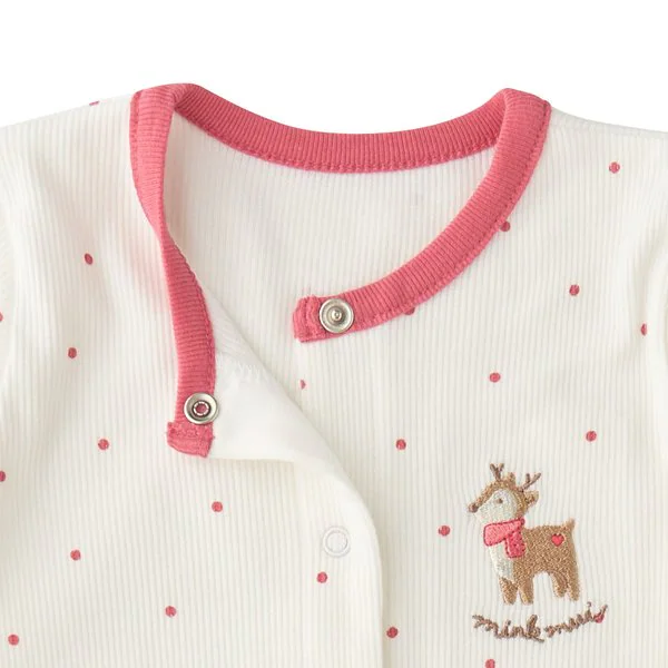 귀여운 도트 패턴과 사슴 모티브 직자수를 매칭한 디자인으로 아 기들에게 선물용으로 구성하기 좋은 아이템 입니다.