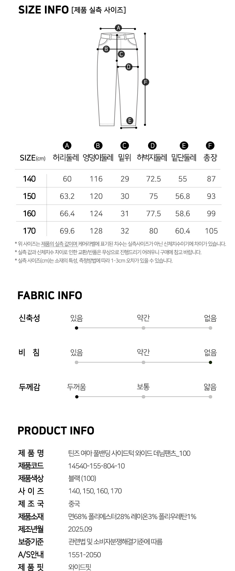 본사 직영 행텐틴즈 여아 풀밴딩 사이드턱 와이드 데님팬츠_100(14540-155-804-10)