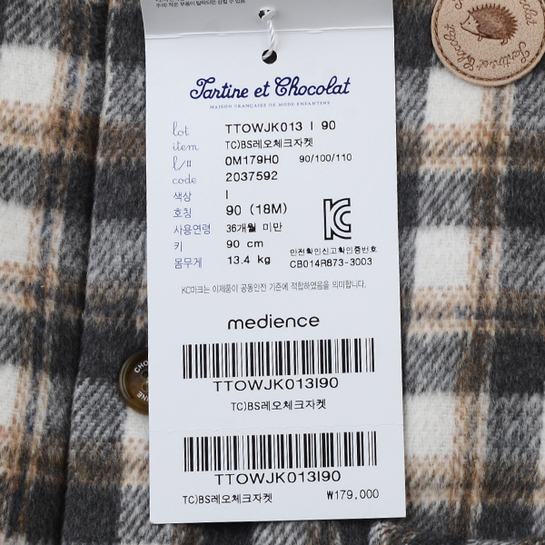 제품소재 : 겉감 폴리에스터 63% 면 24% 레이온 7% 나일론 6% 안감1 면 100% 안감2 폴리에스터 100% 배색 면 100% 충전재 폴리에스터 100%