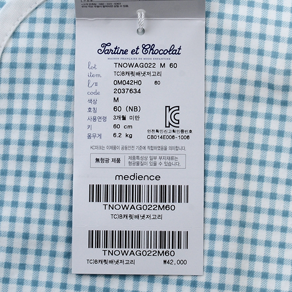 대구백화점 쇼콜라2025신상)캐릿배냇저고리M(TNOWAG022M)