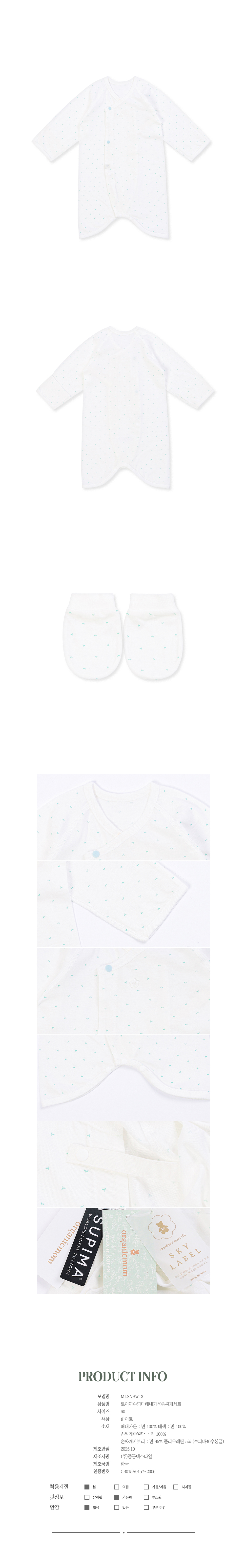 품명 및 모델명 : [오가닉맘]로이핀수피마배내가운손싸개세트 (MLSNBW13)