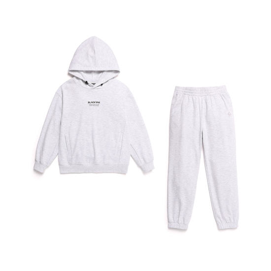 촉감이 부드럽고 신축성이 우수 한 C/P 미니쥬리스판 기모 소재를 사용하여 데일리로 착용하기 좋은 아이템입니다.상의 : 가슴 부분 로고를 접목한 레터링 그래픽 포인트를 적용하여 브랜드 Identity를 더했습니다.