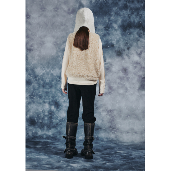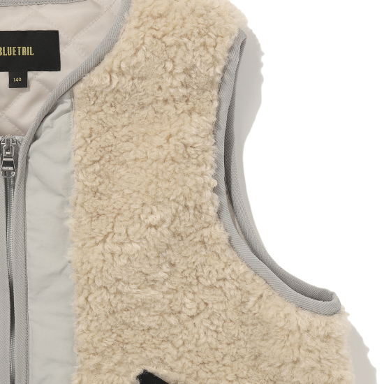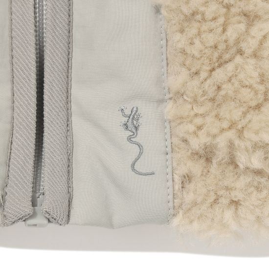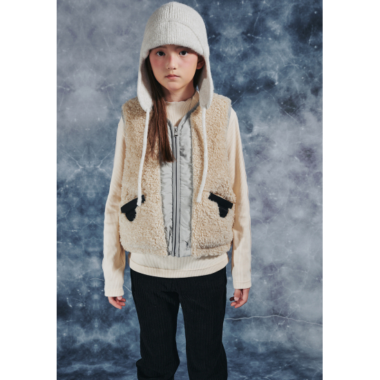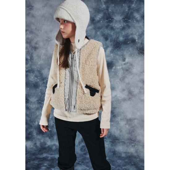 양털처럼 부드럽고 따듯한 베이지 컬러의 보아털 쁘띠 크롭 베스트입니다. 앞 포켓에는 블랙 컬러의 스웨이드 느낌 가죽을 사용해 유니크하 포인트를 더했으며, 지퍼여밈으로 실용성을 높였습니다. 또한 라이너 디테일을 적용해 특별한 멋을 더했습니다. 안감은 정마름모 퀼팅으로 되어 있어 보온성을 강화했으며, 라벨과 도마뱀 자수로 컬러 포인트를 주어 전체적인 디자인에 완성도를 높였습니다.