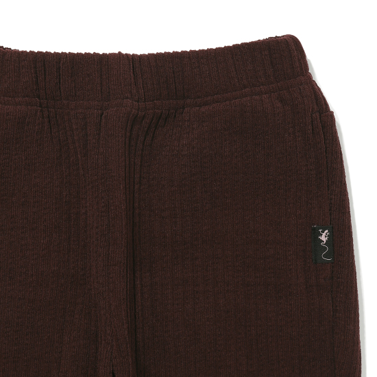 유니크한 브라운 컬러의 변형 코듀로이 벨벳 져지 팬츠입니다. 부드러운 터치감으로 따뜻하고 편안하게 착용할 수 있으며, 오비 절개 없이 가볍게 통고무줄로 제안하였습니다. 소재 특성상 편안하면서도 무릎 늘어남이 없으며, 슬림해 보이는 부츠컷 라인으로 다리가 길어 보이는 실루엣을 연출해 줍니다. 작은 포켓 디테일로 힙업 효과를 더했으며, 탑적으로 스타일링 하기 좋은 아이템입니다.