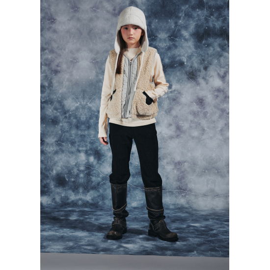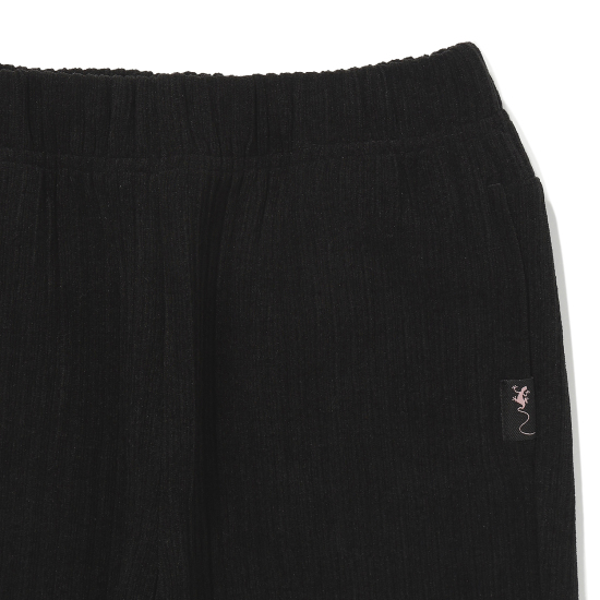 시크한 블랙 컬러의 변형 코듀로이 벨벳 져지 팬츠입니다. 부드러운 터치감으로 따뜻하고 편안하게 착용할 수 있으며, 오비 절개 없이 가볍게 통고무줄로 제안하였습니다. 소재 특성상 편안하면서도 무릎 늘어남이 없으며, 슬림해 보이는 부츠컷 라인으로 다리가 길어 보이는 실루엣을 연출해 줍니다. 작은 포켓 디테일로 힙업 효과를 더했으며, 탑적으로 스타일링 하기 좋은 아이템입니다.