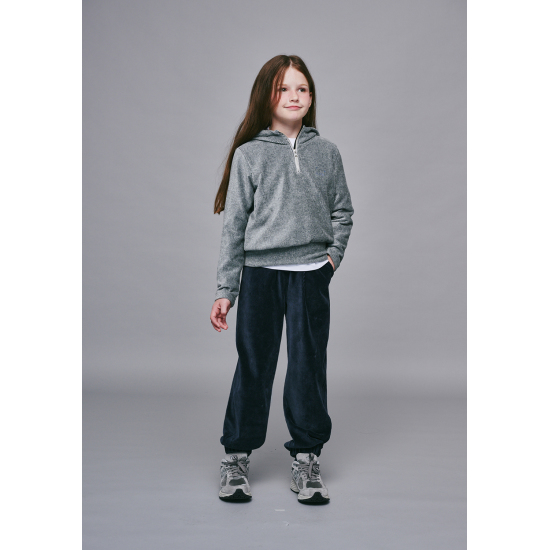 다크하면서 선명한 네이비 컬러의 부드러운 세미 배기핏 벨로아 조거 팬츠입니다. 오비 절개 없이 가볍게 통고물줄로 편안하게 착용할 수 있으며, 포켓 입구에 테이프와 라벨 디테일을 더해 컬러 포인트와 아웃도어 무드를 강조했습니다. 셋업 스웨트셔츠와 함께 매치하면 스포티한 캐주얼 셋업 룩을 완성할 수 있습니다.