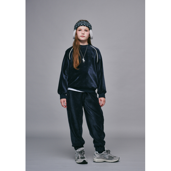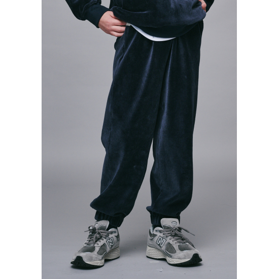 다크하면서 선명한 네이비 컬러의 부드러운 세미 배기핏 벨로아 조거 팬츠입니다. 오비 절개 없이 가볍게 통고물줄로 편안하게 착용할 수 있으며, 포켓 입구에 테이프와 라벨 디테일을 더해 컬러 포인트와 아웃도어 무드를 강조했습니다. 셋업 스웨트셔츠와 함께 매치하면 스포티한 캐주얼 셋업 룩을 완성할 수 있습니다.