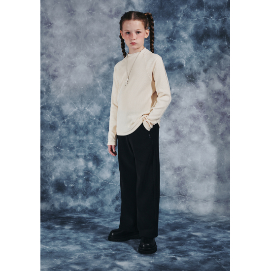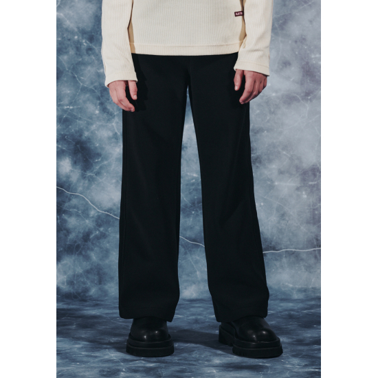 시크한 블랙 컬러의 일자 와이드 다이마루 팬츠입니다. 탄탄하고 고시감 있는 소재에 안쪽 기모가 더해져 한겨울 내내 데일리로 입기좋은 아이템입니다. 라운드 요크와 옆선절개로 힙업 효과를 주었으며, 소재 특성상 편안하하면서도 무릎 늘어남이 적고 다리가 길어 보이는 실루엣을 연출해 줍니다.