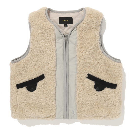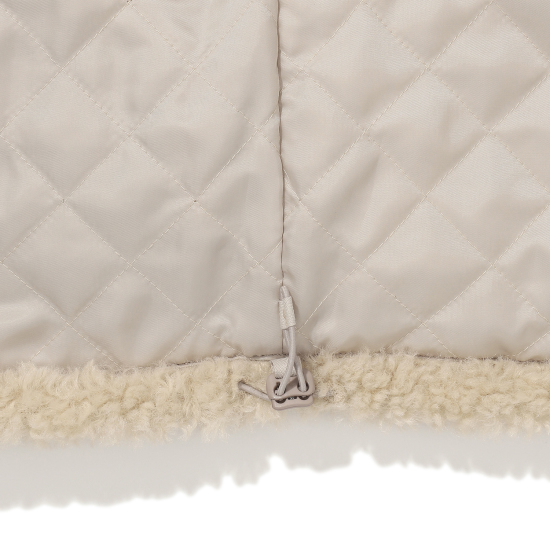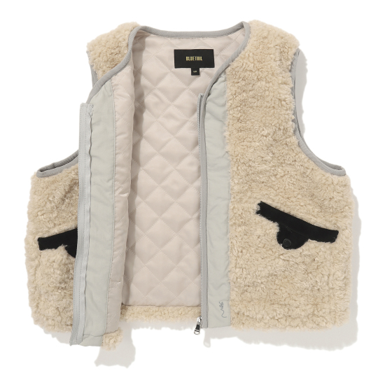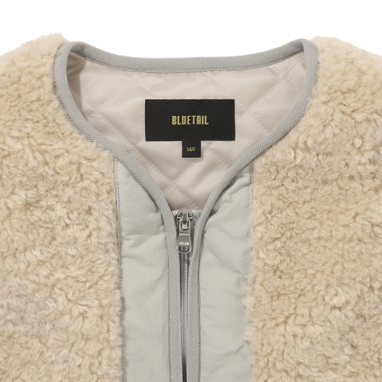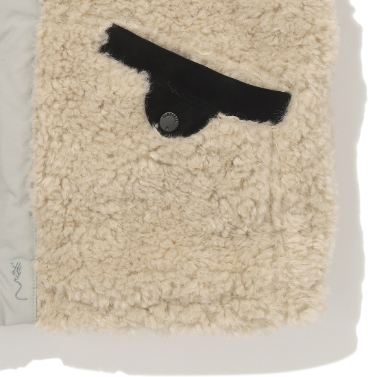 양털처럼 부드럽고 따듯한 베이지 컬러의 보아털 쁘띠 크롭 베스트입니다. 앞 포켓에는 블랙 컬러의 스웨이드 느낌 가죽을 사용해 유니크하 포인트를 더했으며, 지퍼여밈으로 실용성을 높였습니다. 또한 라이너 디테일을 적용해 특별한 멋을 더했습니다. 안감은 정마름모 퀼팅으로 되어 있어 보온성을 강화했으며, 라벨과 도마뱀 자수로 컬러 포인트를 주어 전체적인 디자인에 완성도를 높였습니다.