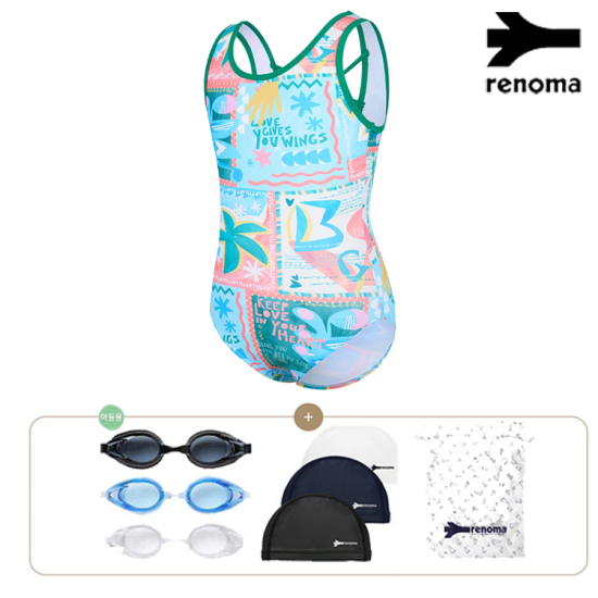 (롯데백화점)여아 야자수 U백 원피스 수영복_수경수모세트 GF2F801SET_GN