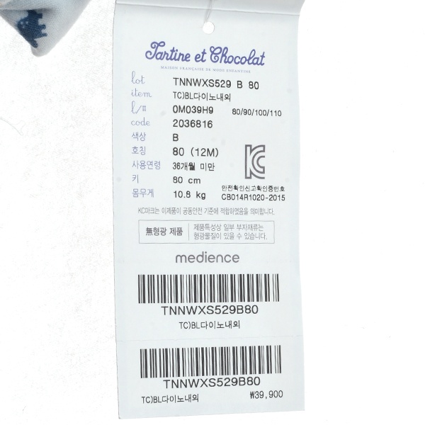 품명 및 모델명 : [쇼콜라]백일돌 다이노내의(TNNWXS529 B)