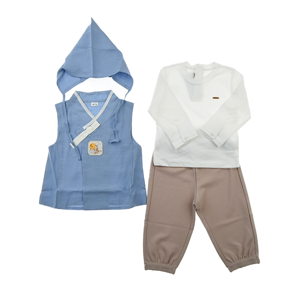 제품소재 : 조끼 레이온84% 폴리에스터16% 티셔츠 면100% 바지 폴리에스터97% 폴리우레탄3%