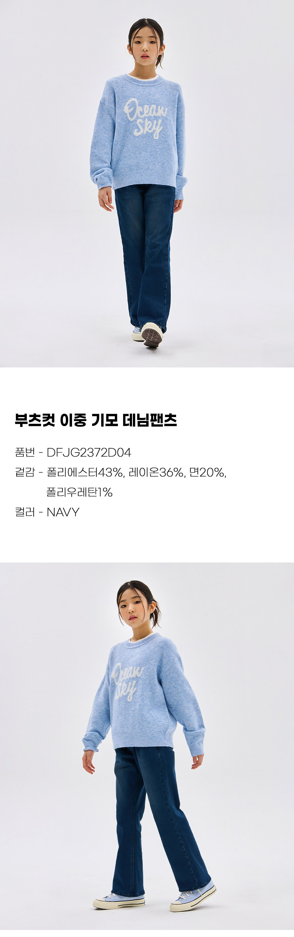 보리보리/오션스카이 여아 부츠컷 이중 기모 데님팬츠-DFJG2372D04