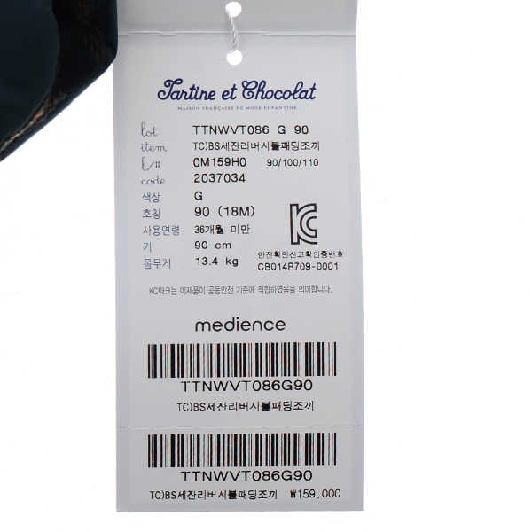 제품소재 : 감 폴리에스터 100% 안감 폴리에스터 69% 면 28% 레이온 3% 배색 면 71% 레이온 27% 폴리우레탄 1% 폴리에스터 1% 충전재 폴리에스터 100%