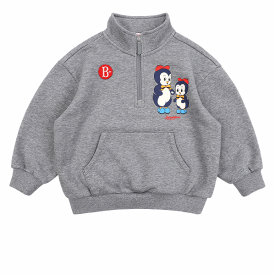 베베드피노의 댄시 펭귄 하프 넥 스웨트셔츠입니다. 안쪽에 부드러운 기모 처리가 되어 있으며 이번 시즌 베베드피노만의 귀여운 Dancy penguin 오브제를 나염 작업으로 제작했습니다. 전체적으로 여유로운 실루엣에 하프넥디테일과 지퍼 잠금 처리로 입고 벗기에 용이합니다. 남/여아 구분 없이 착용 가능한 유니섹스 아이템으로 데일리 룩, 캐주얼룩 등 다양한 연출에 스타일링하기에 용이한 아이템입니다.
