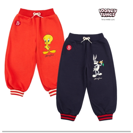 베베드피노 루니툰즈 스웨트 팬츠 입니다. Looney Tunes X Bebedepino 콜라보 제품으로, 세련된 Navy 컬러와 매력적인 Scarlet 두 컬러로 부드럽고 도톰한 Cotton 혼방 소재로 제작했습니다. 전체적으로 볼륨감있는 핏의 스웨트팬츠로 밑단 컬러 블록 요꼬가 포인트입니다. 허리부분 전체 밴딩처리로 아이들이 입고 활동하기에 편안함을 줍니다. 앞판에는 Looney Tunes의 매력적인 Bugs bunny와 Tweety 오브제가 각 각 포인트나염으로 들어가있습니다.