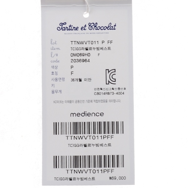 품명 및 모델명 : [쇼콜라]TC)GG라벨르누빔베스트(TTNWVT011 P)