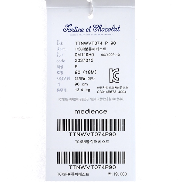 품명 및 모델명 : [쇼콜라]TC)GR봉쥬퍼베스트(TTNWVT074 P)