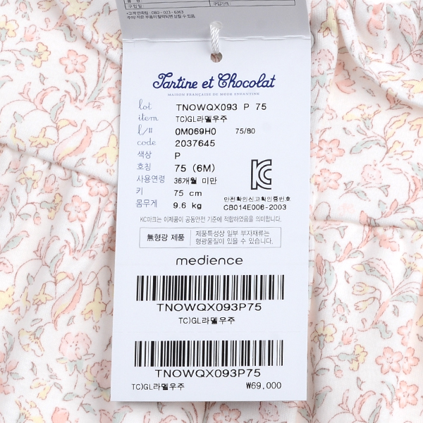 세탁방법 및 취급시 주의사항 : 삶지 마십시오. 기계건조 금지. 주의! 작은 부품이 탈락되면 삼킬 수 있음.