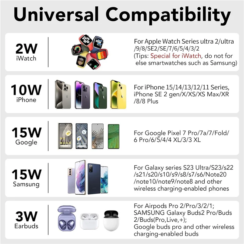 3. 삼성 시계 또는 Apple 시계 무선 충전 버전 (신중하게 필요한 것을 선택하십시오); 시계 충전기는 이동식을 지원합니다.