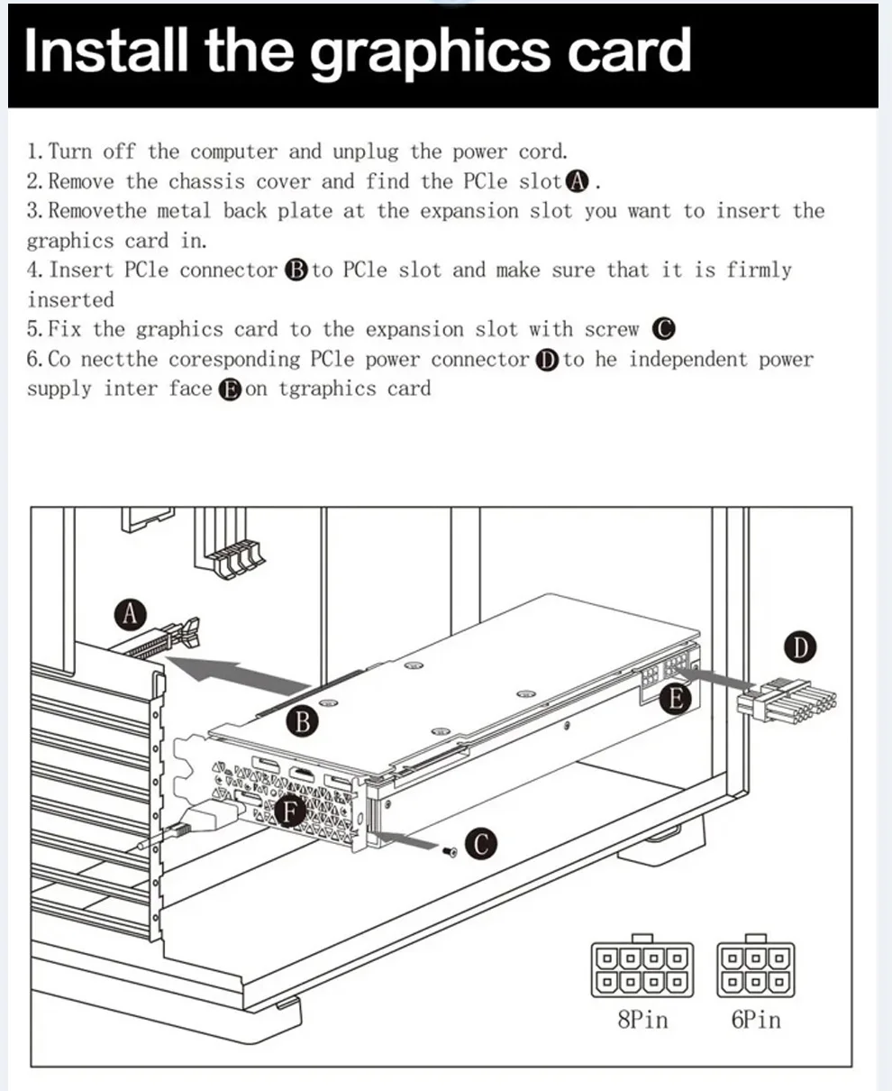 6.Co nectthe corespondingPCle 전원 커넥터 그는 독립적 인 전원 공급 장치 interface t그래픽 카드에