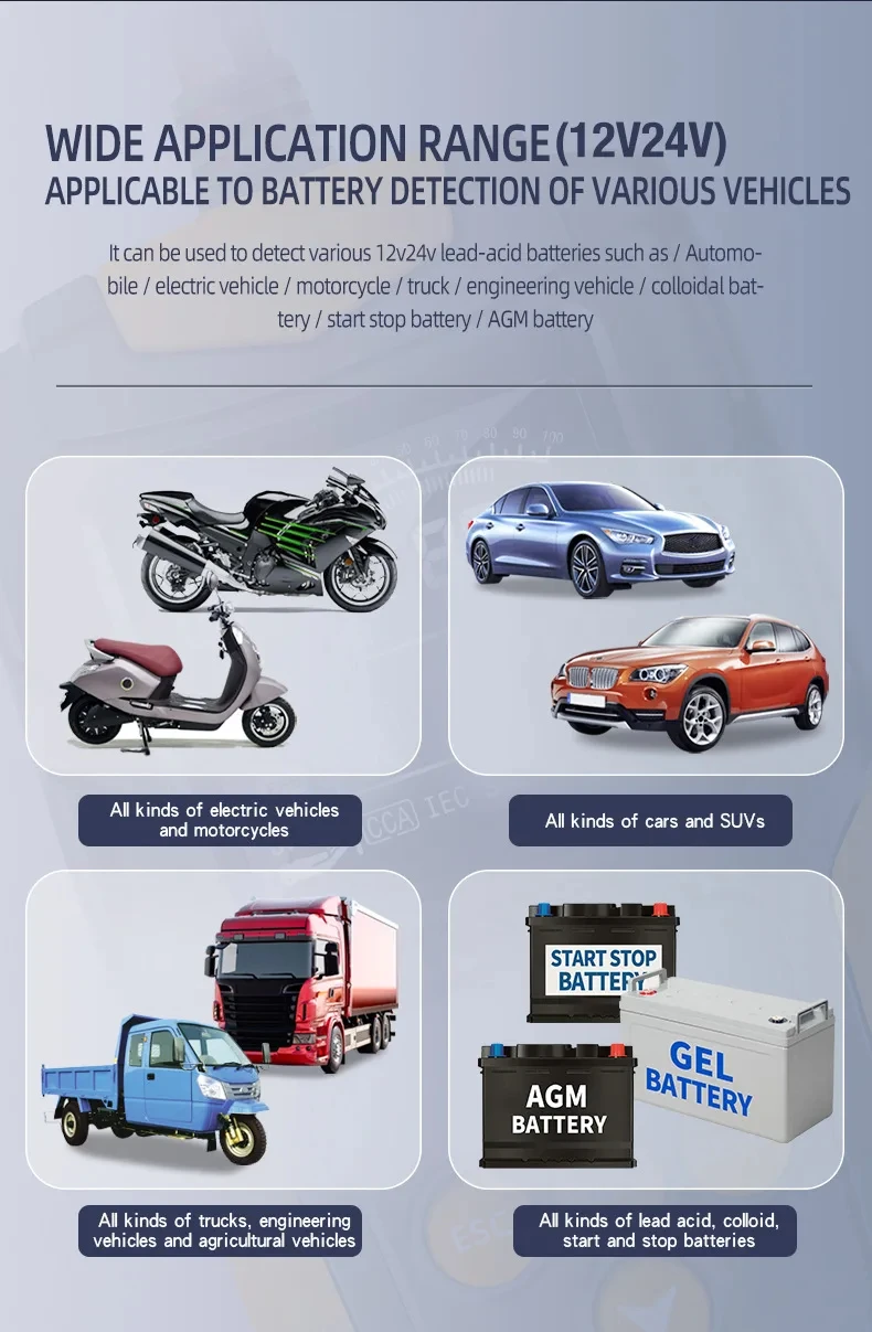 사용 범위: 침수 된 정사이즈, EFB, AGM 태블릿 배터리, AGM 와인딩 배터리, 젤 배터리, WET 등을 포함한 모든 자동차 납산 스타터 배터리