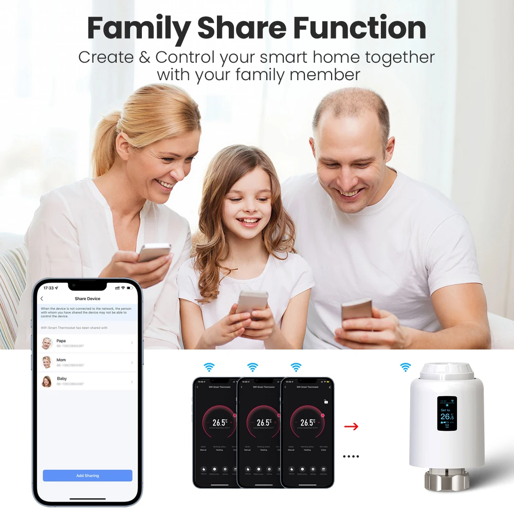 호환 가능: 6 가지 종류의 어댑터 액세서리 제공 (Danfoss RA & RAV & RAVL, Caleffi, Giacomini, M28 밸브)