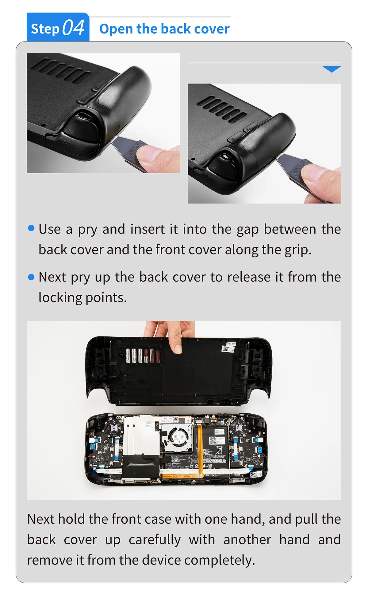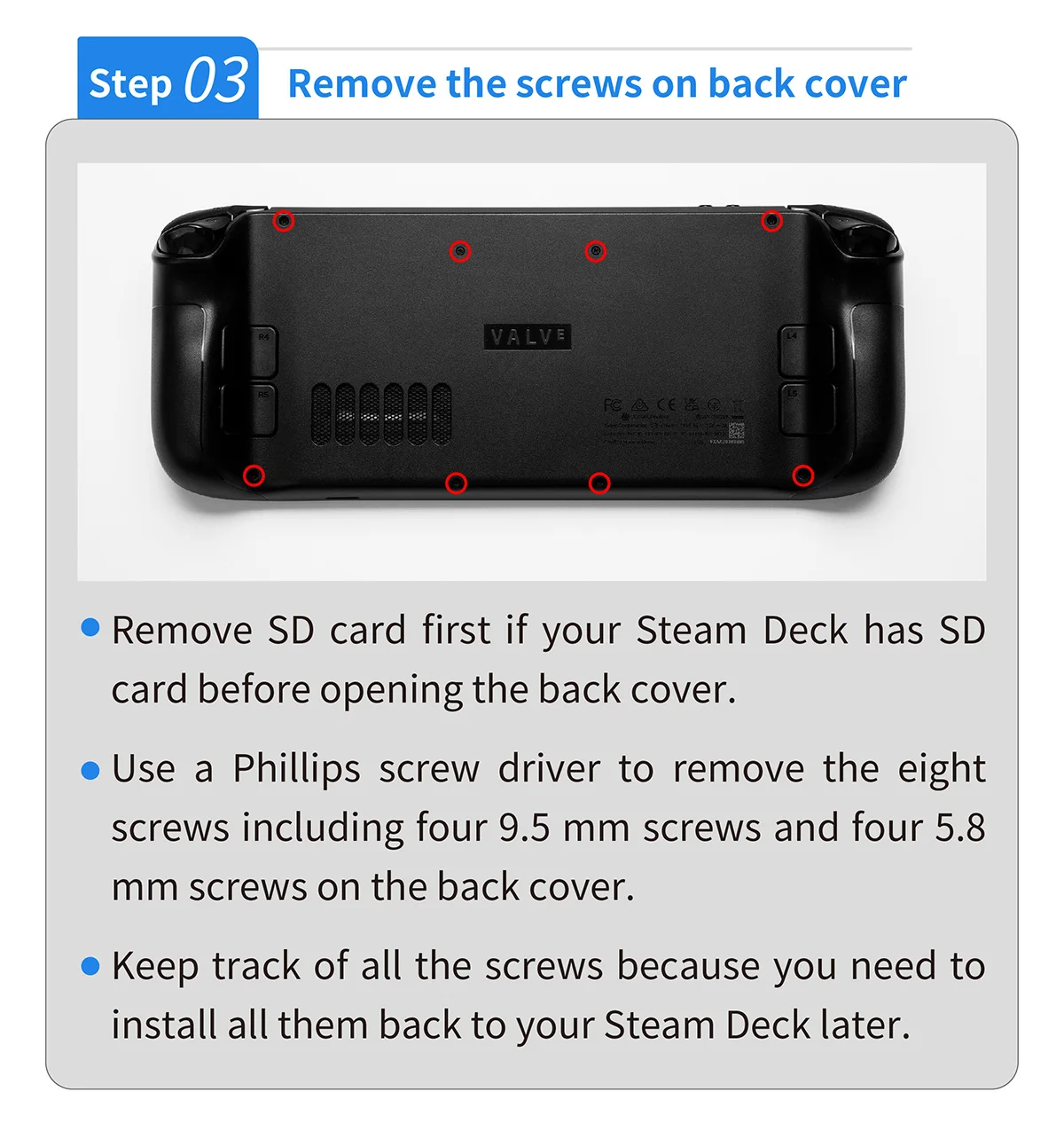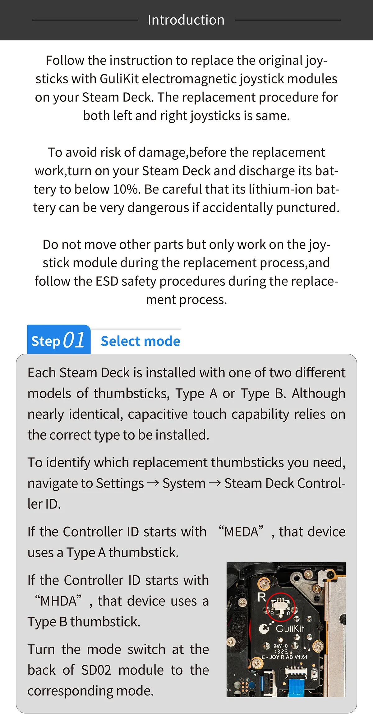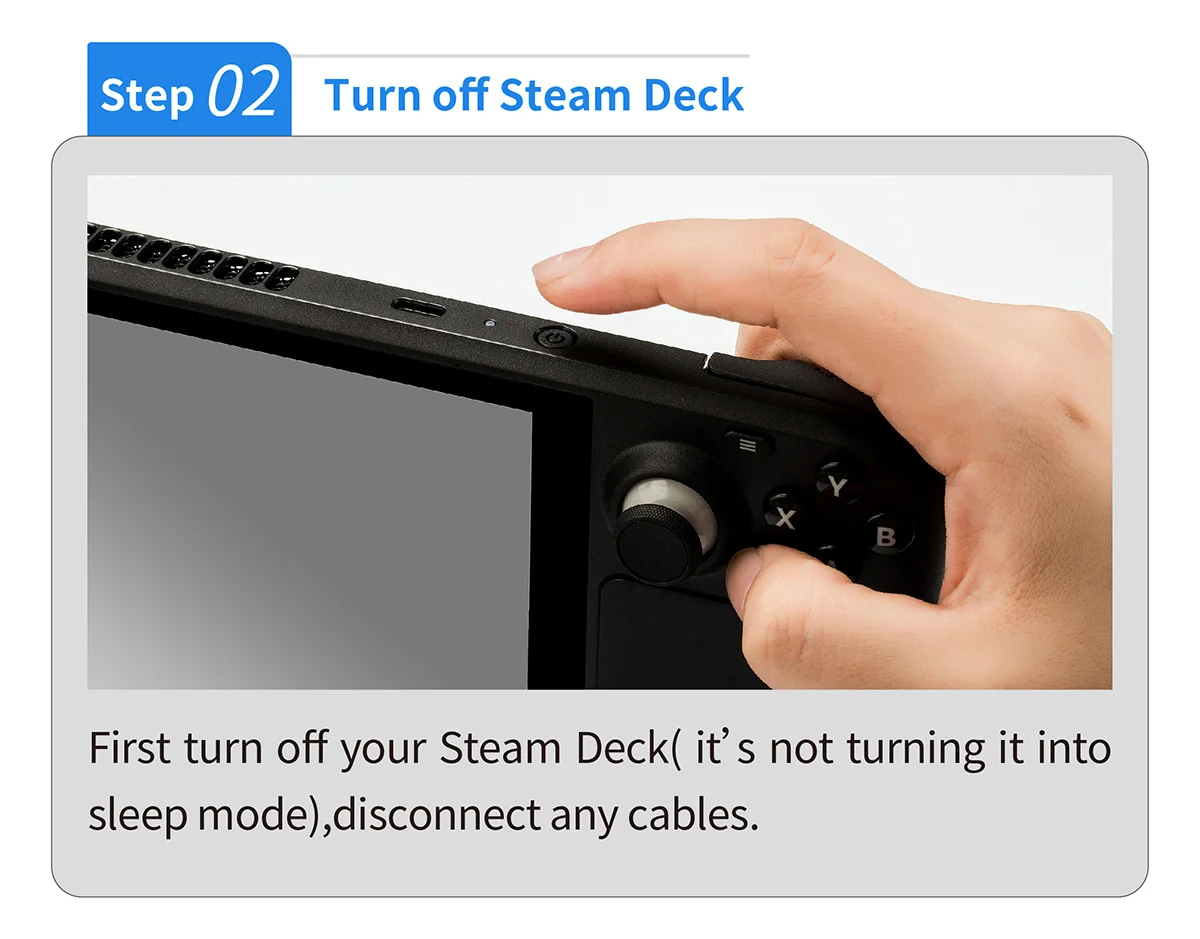 2. Gulikit 조이스틱을 설치 한 후 Steam Deck을 켜고 조이스틱 보드의 작은 스위치를 누르십시오. 이 과정에서 조이스틱을 만지지 마십시오.