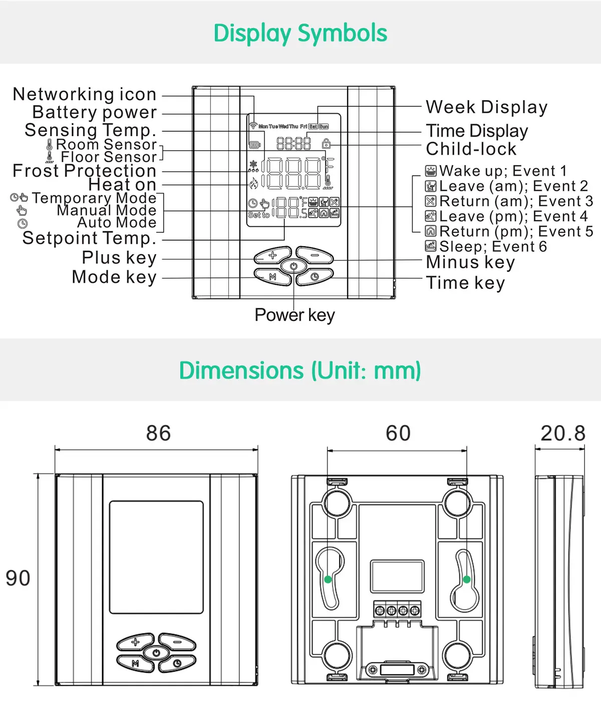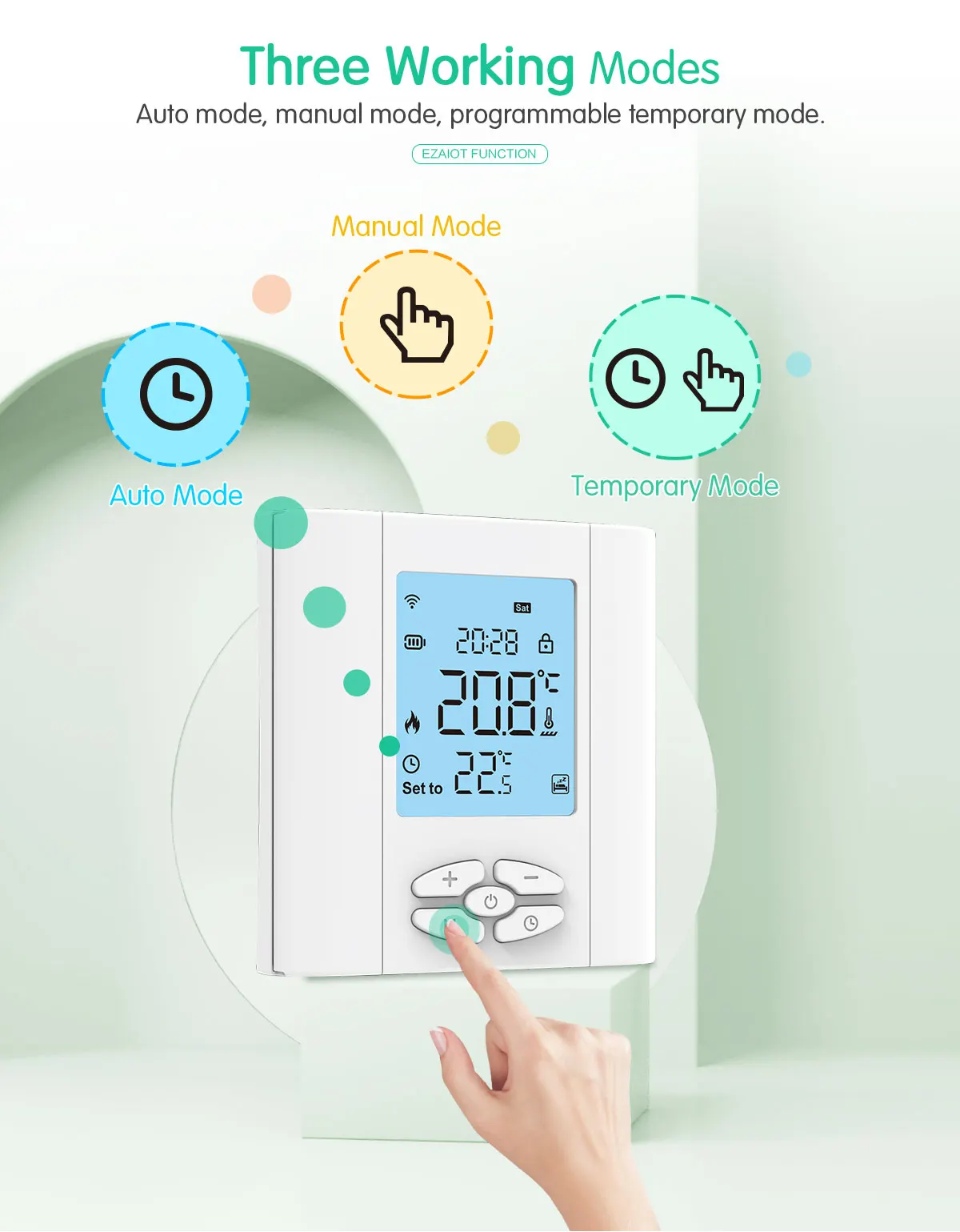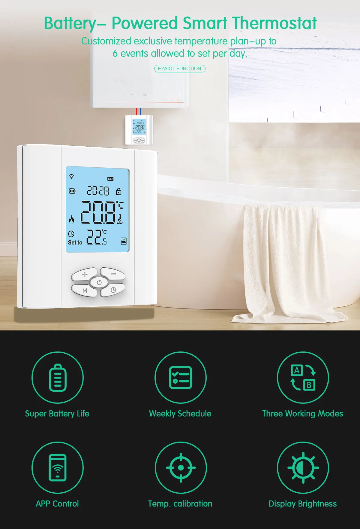 【지그비 스마트 온도 조절기】1.8 인치 LCD 화면이 있는 민감한 버튼, 클래식 디자인, 모든 홈 스타일에 적합