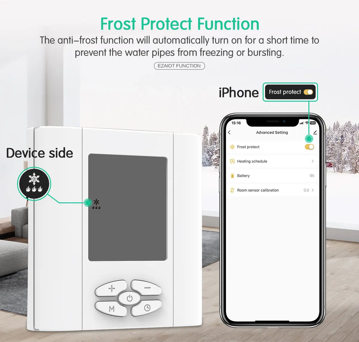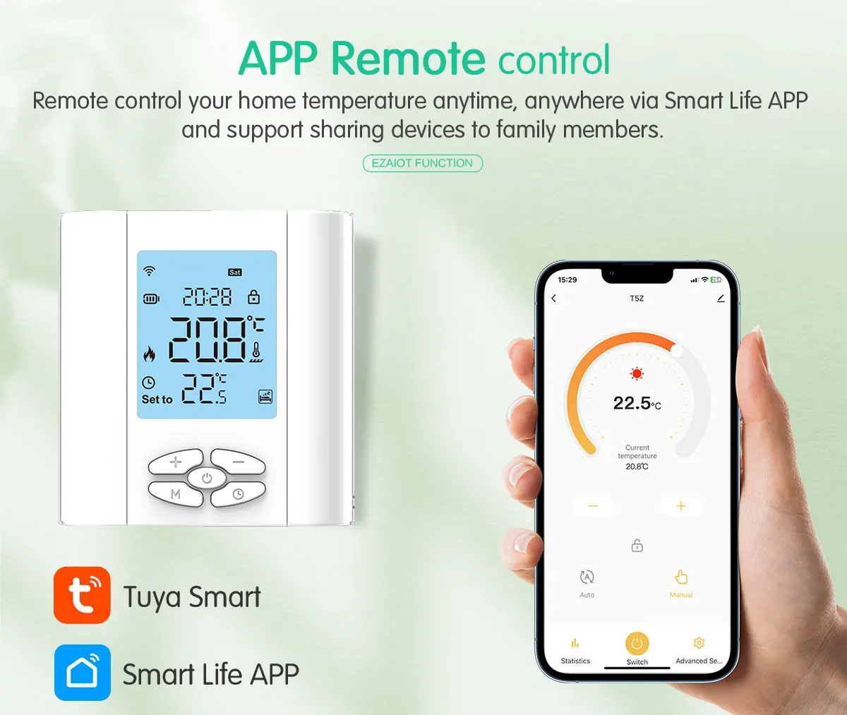 APP 리모콘】2.4G WIFI를 지원하고 스마트 라이프/투야 APP를 지원합니다. 집에없는 경우에도 원하는대로 온도를 조절할 수 있습니다.