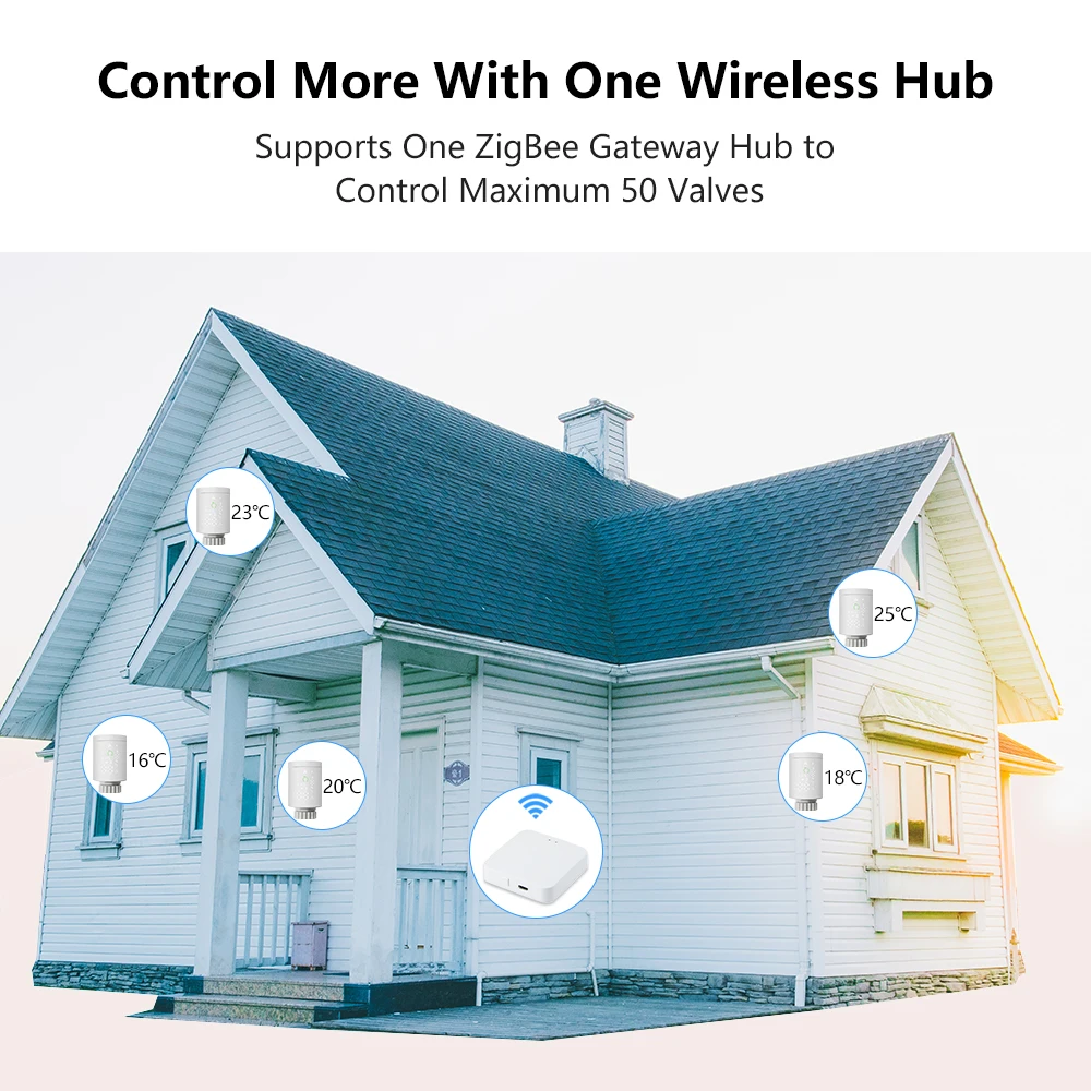 최대 50 개의 밸브를 제어하는 하나의 ZigBee 게이트웨이 허브 지원 배터리 수명을 연장하려면 에너지 절약 모드를 선택하십시오. 광범위한 응용
