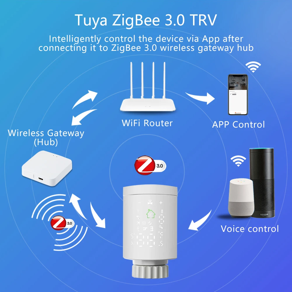 투야 지그비 3.0 TRV 온도 조절기 스마트 라디에이터 액추에이터 밸브 열 헤드 프로그래밍 가능 온도 컨트롤러 알렉사 구글 홈