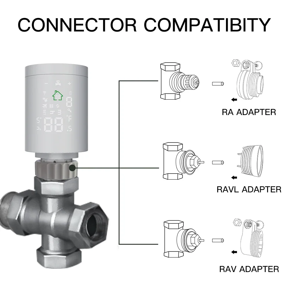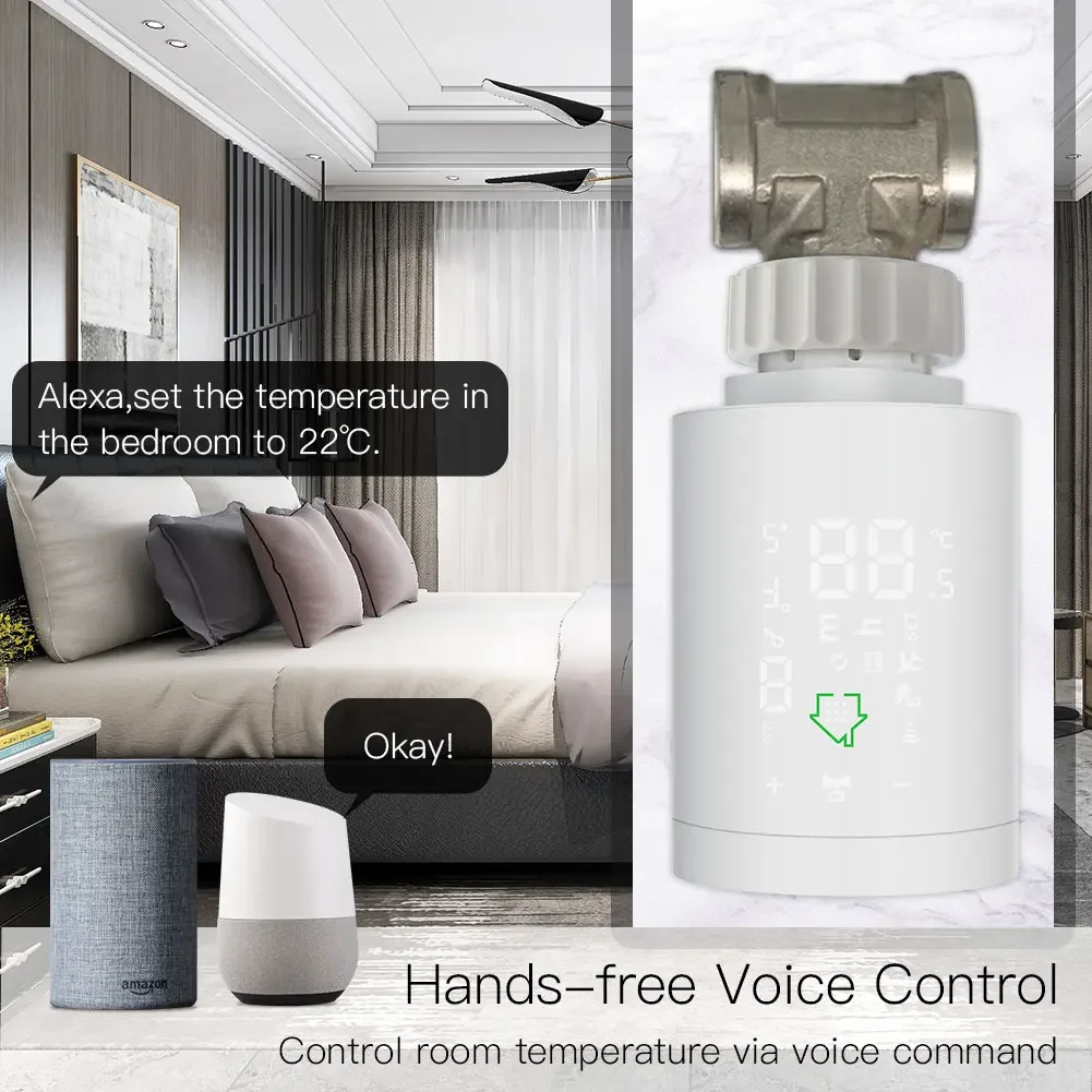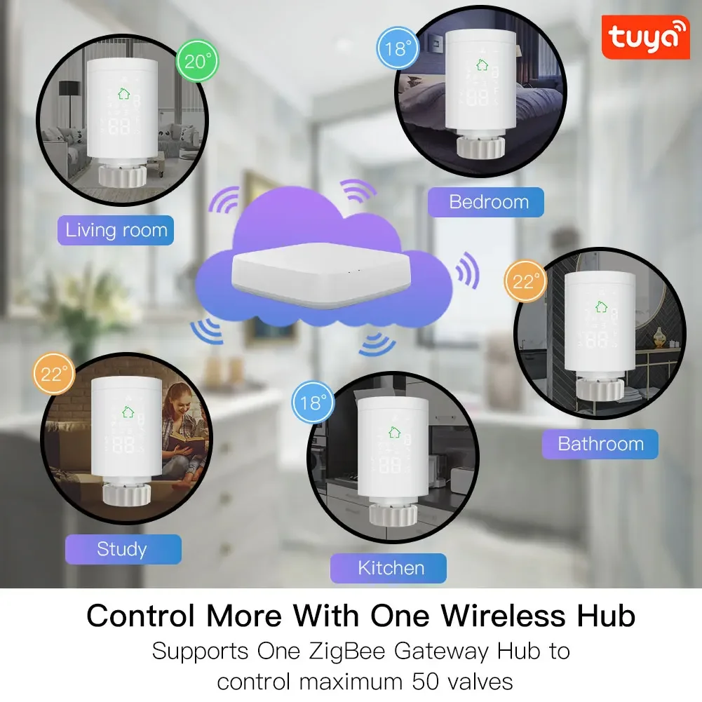 Tuya ZigBee3.0 새로운 미니 스마트 라디에이터 액추에이터프로그래밍 가능한 온도 조절기 히터 온도 컨트롤러 난방 정확한 배터리 구동 TRV 온도 조절 라디에이터 밸브 컨트롤러Alexa로 음성 제어