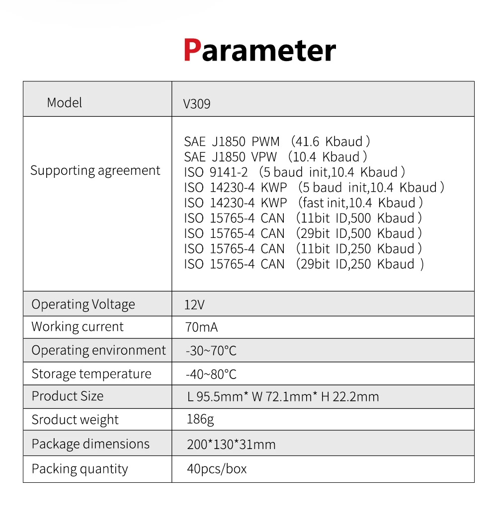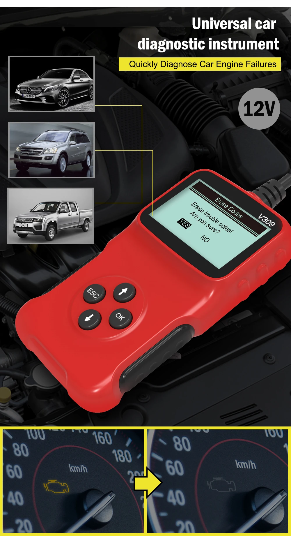 V309 자동차 진단 자동차 결함 감지기 OBD II 실시간 엔진 결함 진단 조회 코드 판독기 점검 도구