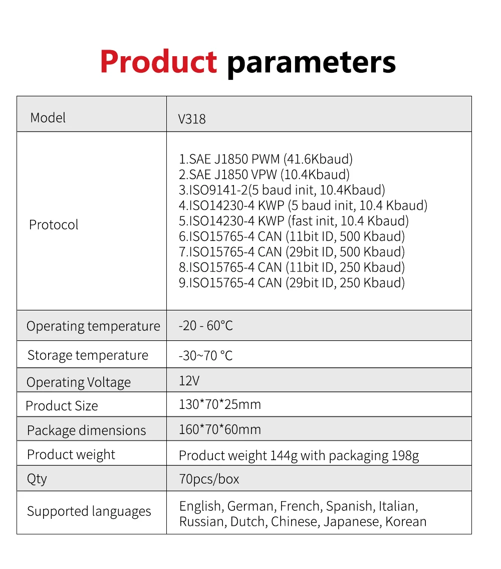 V318 OBD2 자동차 진단 스캔 도구 러시아어 OBD 2 스캐너와 자동차 ODB2 코드 리더 자동 도구 PK ELM 327 V 1 5